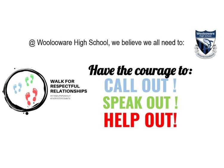 A catch-cry, created by former Woolooware High School students, seeks that everyone in our community 'Have the Courage to Call Out! Speak Out! Help Out!' This impactful phrase aims to be memorable and provide a scaffold for action. Simply put, we all have a part to play.